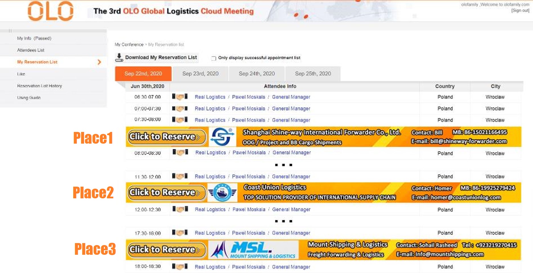 The appointment system of OLO 6th Global Logistics Cloud Meeting....